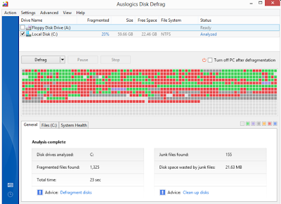 Free Download Auslogics Disk Defrag v4.3.1.0 Update New 2013 Free - Auslogics Disk Defrag is a program application that you can use as a compact and fast defragmentation tool that supports FAT 16/32 and NTFS file systems. It is supplied with a disk optimization techniques are advanced, which will improve the system sluggishness and crashes caused by disk fragmentation you. fragmentation leads to system slowdowns disk, PC crashes, slow startups and shutdowns. Auslogics Disk Defrag is designed for fast defragmentation of modern hard disks.features: